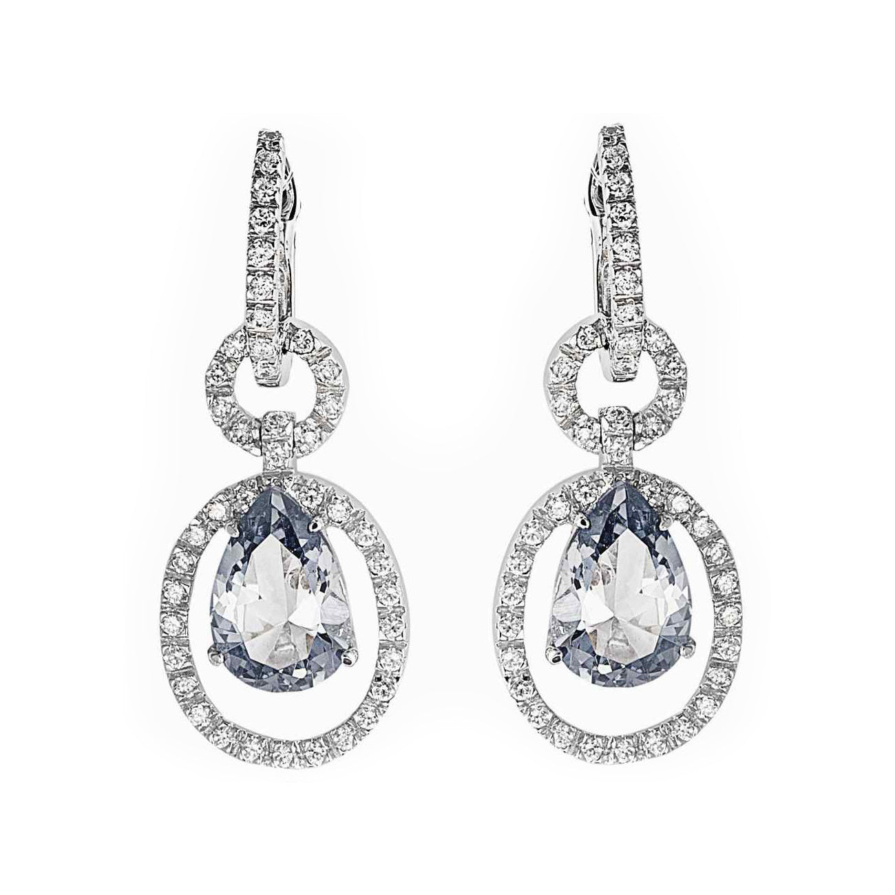 The elegant Parisian style Princess Mary Earrings are made of 925 sterling silver with a regal design featuring a large blue cubic zirconia stone surrounded by numerous sparkling clear cubic zirconia stones. Result: Instant Elegance