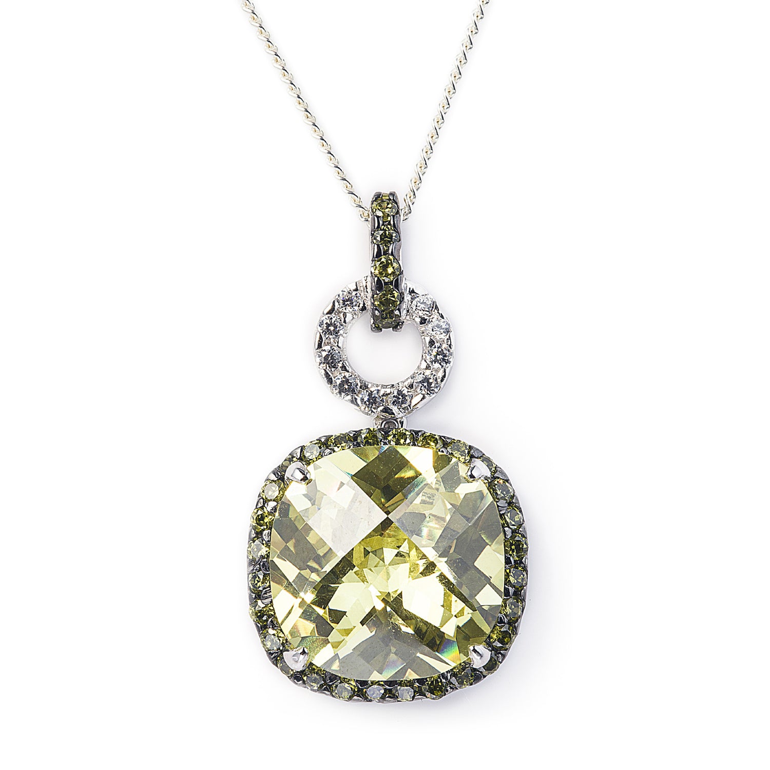 The gorgeous antique-style Taylor Vintage Necklace in 925 sterling silver features a stunning green peridot stone surrounded by dainty black cubic zirconia stones. Matches our Taylor Vintage Earrings and Ring. Result: High Impact