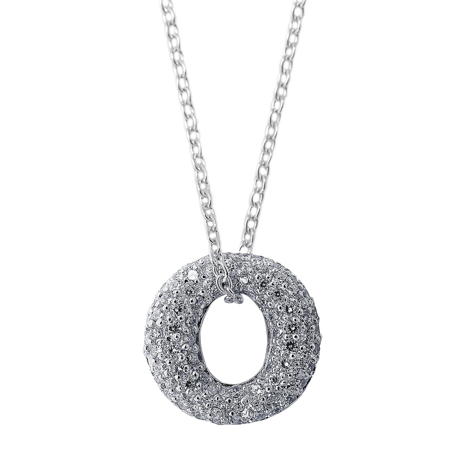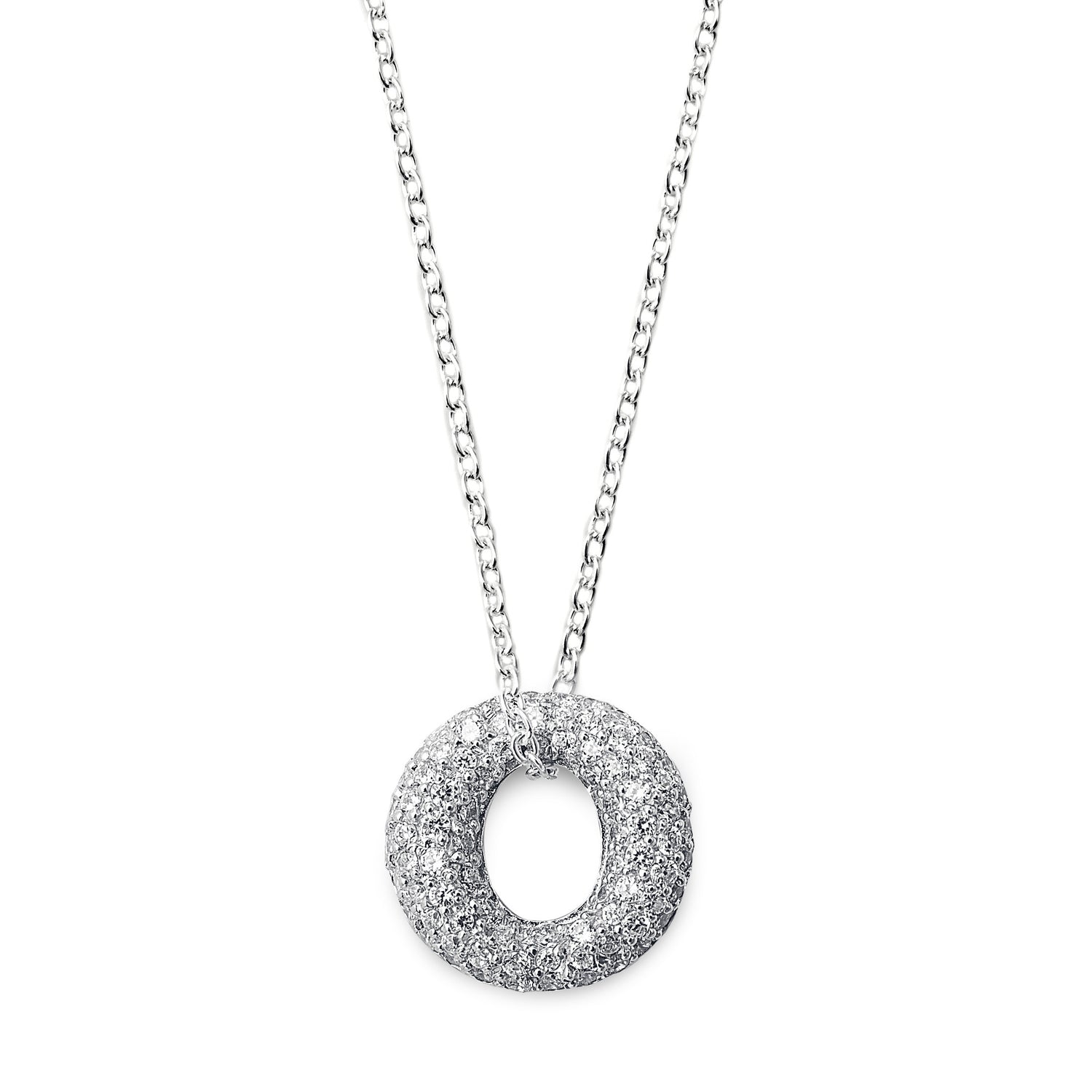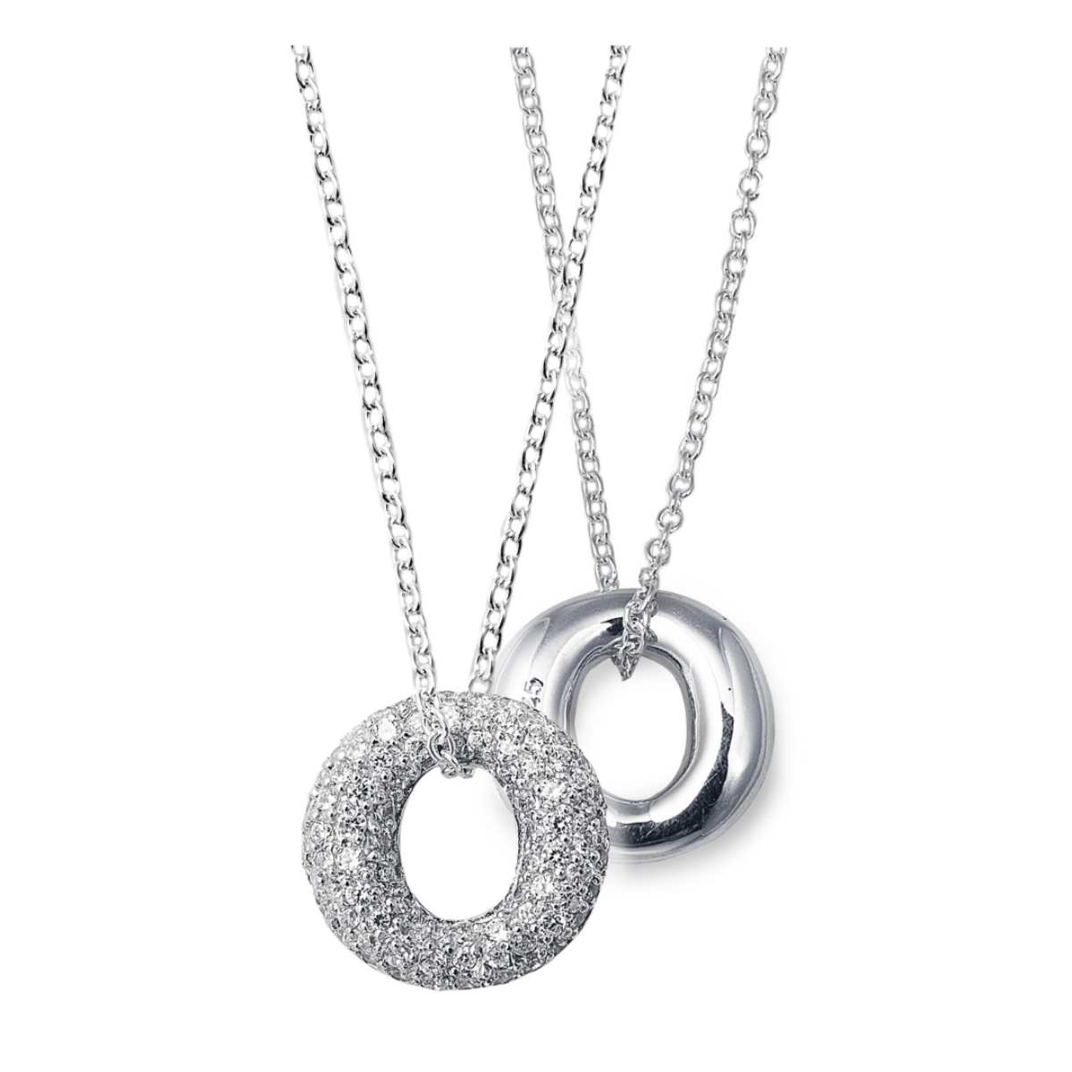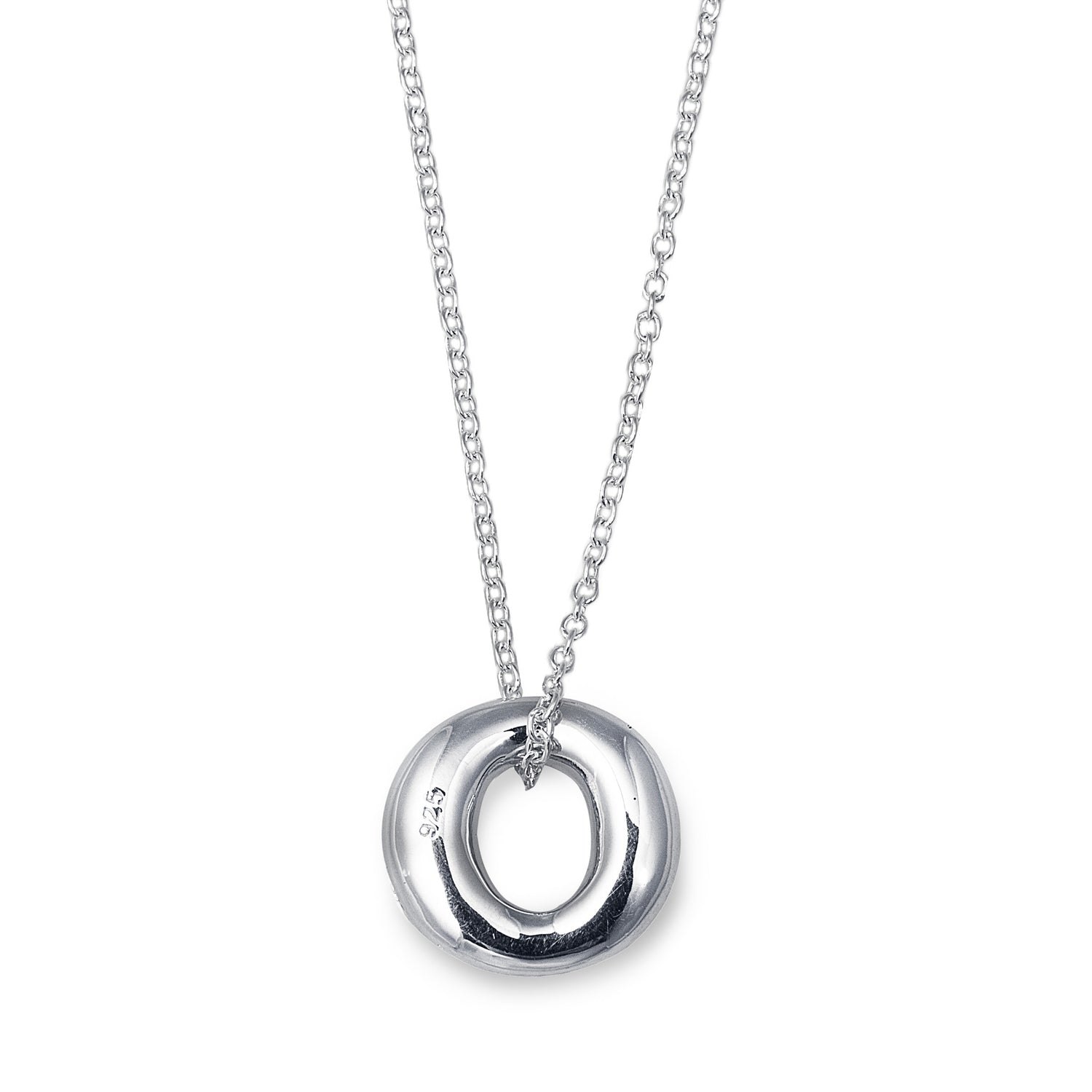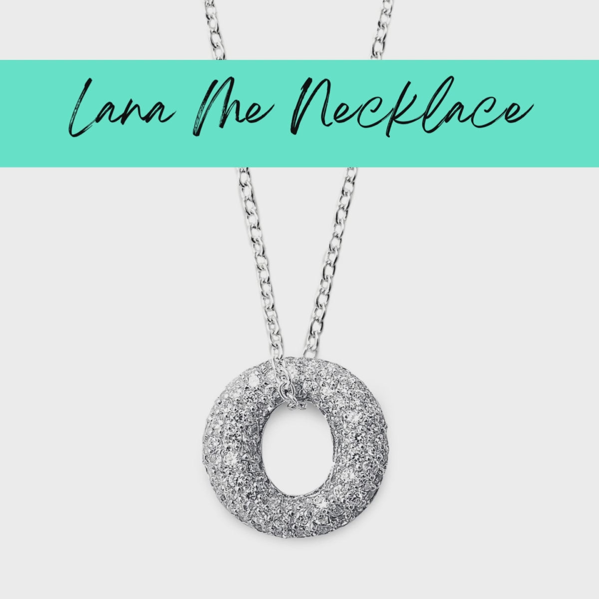 The Lana Me Necklace is a dainty 'O' shape necklace with a dual feature, plain silver on one side and cubic zirconia stones on the reverse to create two different looks. Crafted in 925 sterling silver.