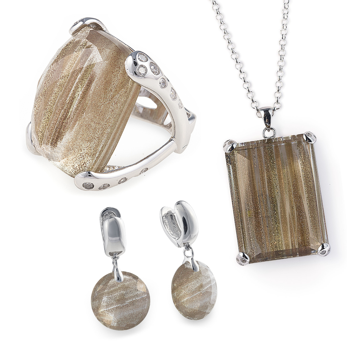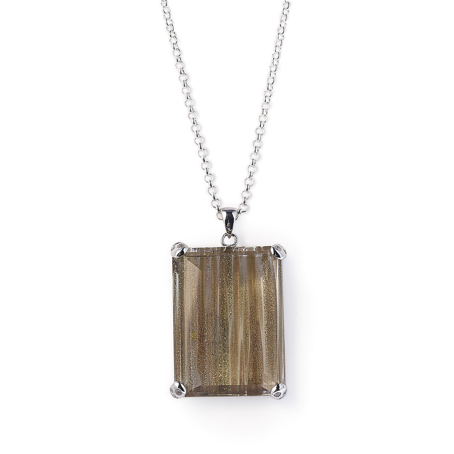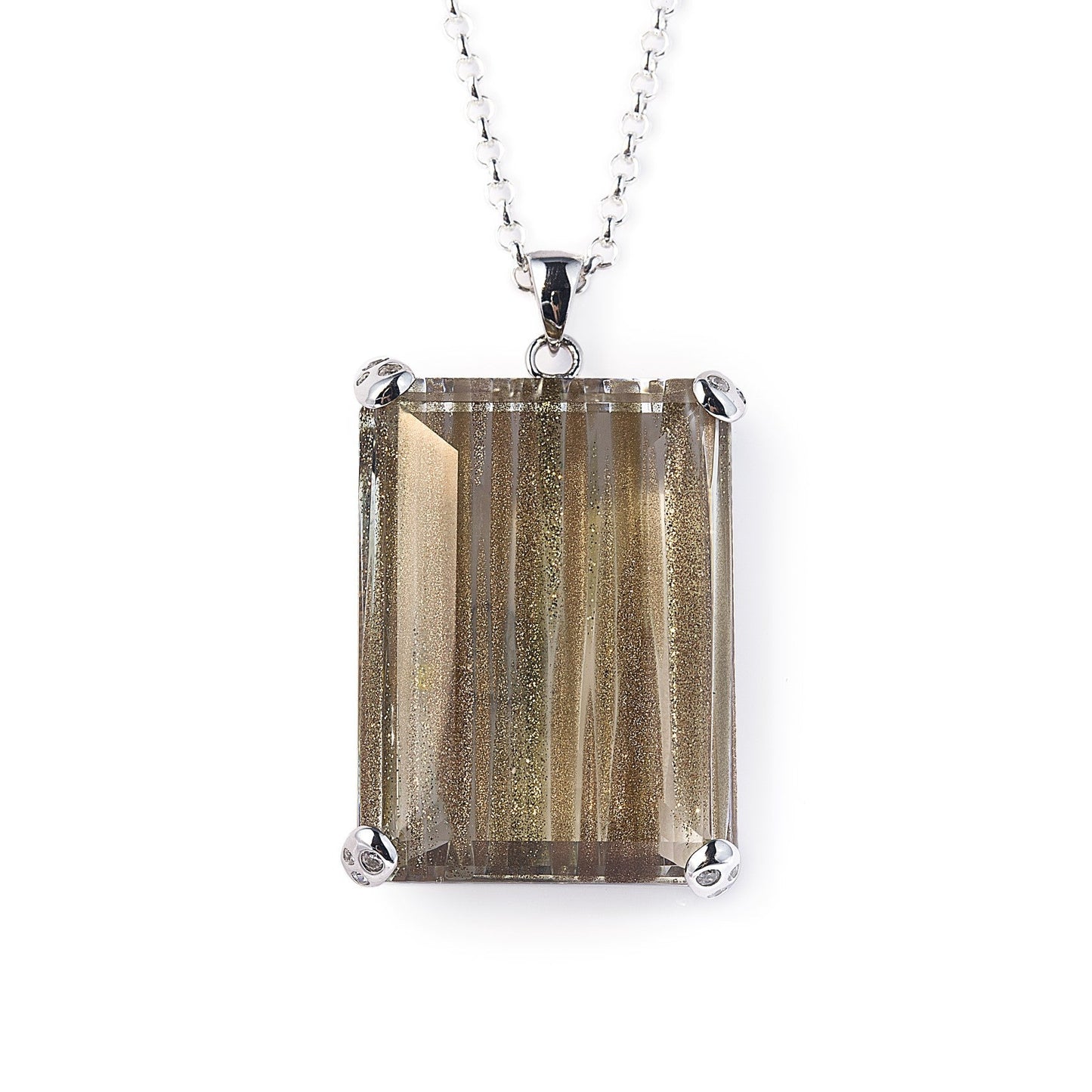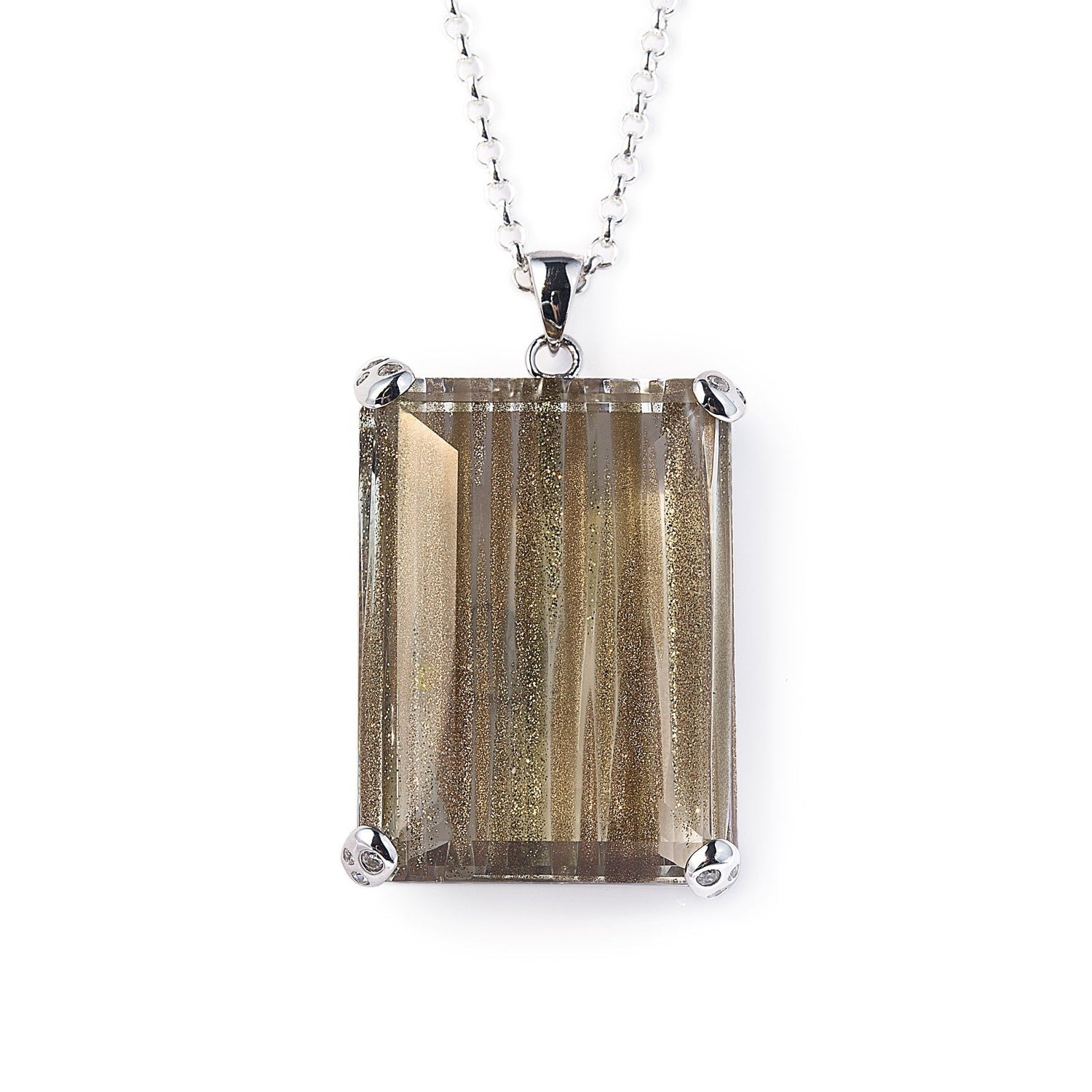 The elegant Sunkissed Beyonce Necklace is made of 925 sterling silver encasing a stunning large facet-cut champagne obsidian for muted sparkle. This is a piece for glam queens.
